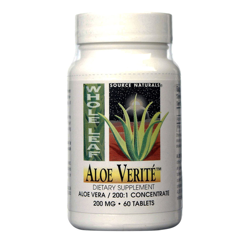 يقدم Source Naturals Aloe Verite شكلاً مركزًا من الصبار في شكل أقراص. يحتوي كل قرص على 200 ملجم من مسحوق التركيز المشتق من هلام الورقة الداخلية لنبات الصبار. تم تصميم هذا المنتج لتوفير فوائد عصير الصبار الفاخر بشكل أكثر ملاءمة. يحتوي جل الصبار الموجود في هذه الأقراص على 5% على الأقل من الأسيمانان، وهو بوليمر طويل السلسلة أظهر في الدراسات قبل السريرية قدرته على تعديل الوظيفة المناعية، بما في ذلك تنشيط البلاعم وإنتاج السيتوكين. كل قرص يعادل حوالي 1.33 أونصة سائلة من عصير الصبار الطازج. هذا المنتج مناسب للنباتيين. تحتوي الزجاجة على 60 قرص.
