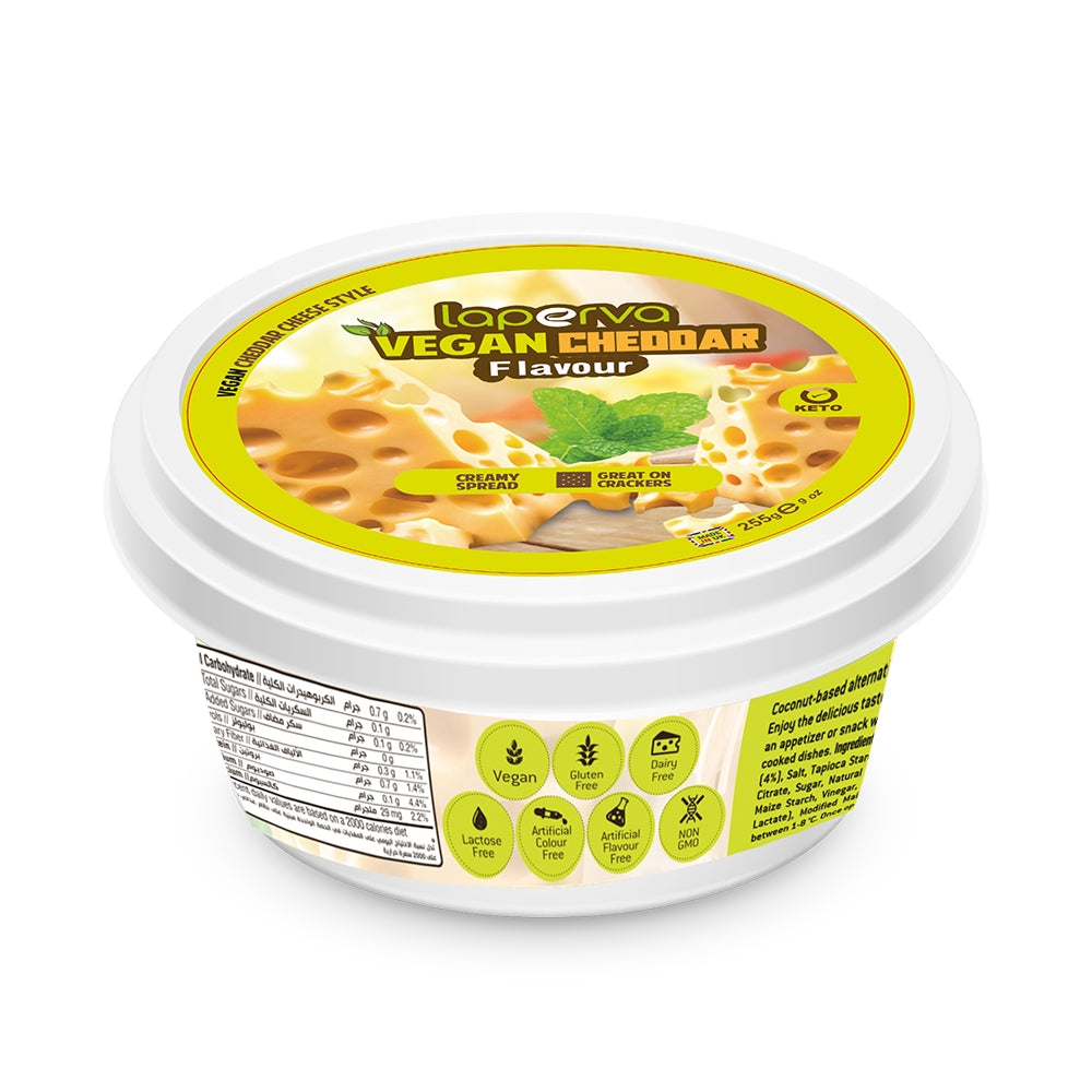 تعد جبنة شيدر لابيرفا النباتية خيارًا متعدد الاستخدامات ومغذيًا لأولئك الذين يتبعون أنظمة غذائية نباتية أو كيتو أو منخفضة الكربوهيدرات. إنه مثالي للأشخاص الذين يعانون من حساسية الألبان أو عدم تحمل اللاكتوز. يمكن استخدام هذا الجبن كفاتح شهية، أو كوجبة خفيفة مع الفواكه والخبز، أو في وصفات الطبخ المختلفة. وهي مصنوعة بشكل أساسي من زيت جوز الهند الصحي، مما يوفر طعمًا لذيذًا يروق للكثيرين.