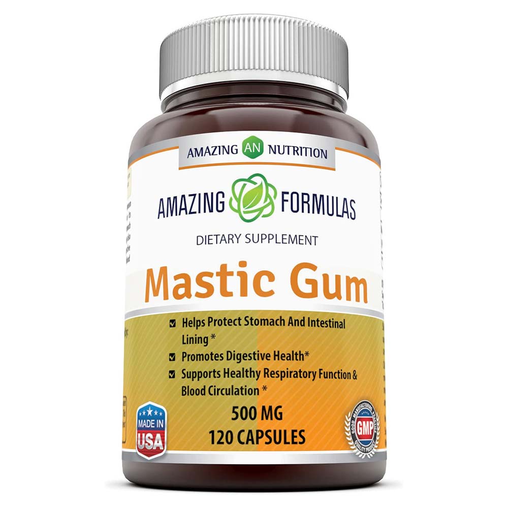 Amazing Formulas Mastic Gum هو مكمل غذائي يحتوي على 1000 ملغ من صمغ المستكة لكل وجبة، مشتق من راتنج شجرة المستكة في البحر الأبيض المتوسط ​​(Pistacia Lentiscus). يشتهر العلكة المصطكي بخصائصه المضادة للالتهابات، وهو مفيد لصحة الجهاز الهضمي، ويحتمل أن يخفف من مشاكل مثل حرقة المعدة وعسر الهضم. قد يساعد في تقليل حمض المعدة وحماية بطانة المعدة والأمعاء. بالإضافة إلى ذلك، يدعم هذا المكمل وظيفة الجهاز التنفسي الصحية وصحة الفم والدورة الدموية.