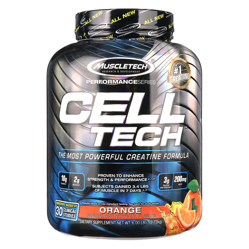 تركيبة Muscletech Cell Tech Creatine Formula، برتقالية، 6 رطل، هي مكمل غذائي مصمم للرياضيين ولاعبي كمال الأجسام الذين يهدفون إلى تعزيز قوة العضلات وحجمها. تعتمد هذه الصيغة المتقدمة على أبحاث مكثفة وقد أظهرت نتائج مهمة، حيث اكتسب المستخدمون متوسط ​​3.4 رطل في 7 أيام فقط.