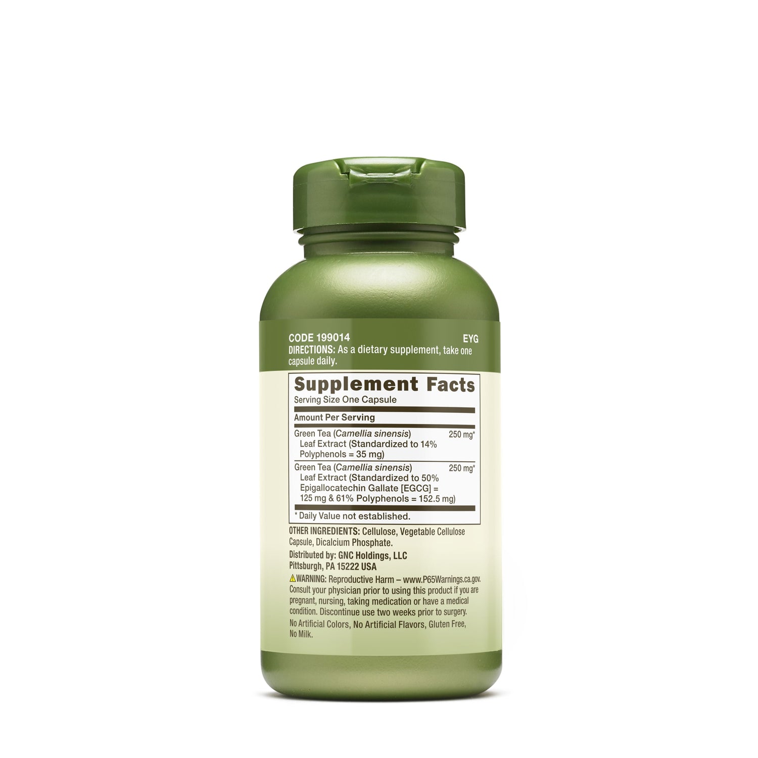 على عكس الأعشاب الكاملة التي يتم تجفيفها أو تقطيعها أو طحنها إلى مسحوق، فإن مستخلصات GNC القياسية توفر جودة وفعالية فائقة. تحتفظ عملية التغليف، التي غالبًا ما تتضمن الماء أو الكحول، بمجموعة كاملة من فوائد الشاي الأخضر بدون مواد مالئة أو إضافات غير ضرورية.