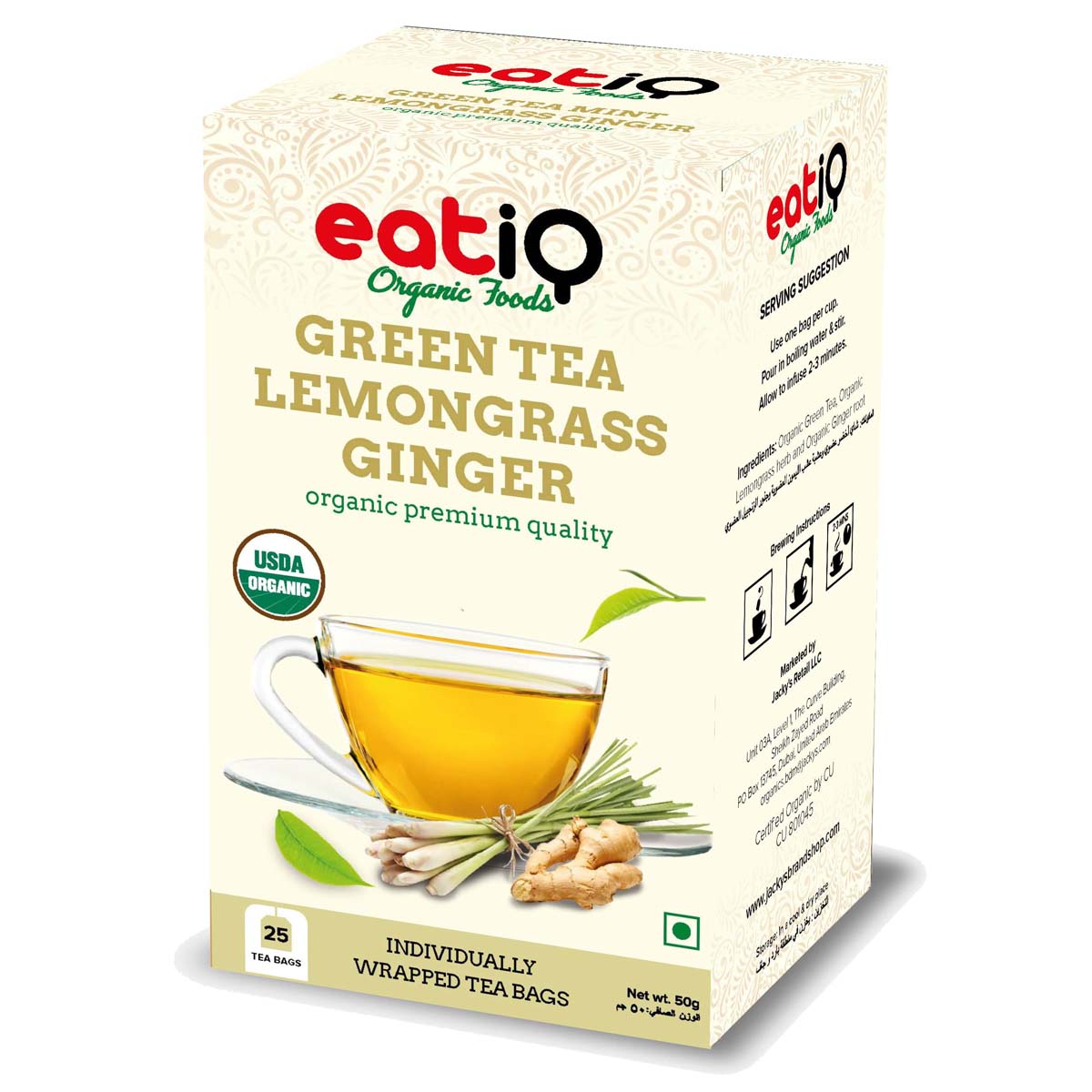 Eatiq Organic Foods Green Tea Lemongrass and Ginger Tea, 25 Bags - Eatiq Organic Food