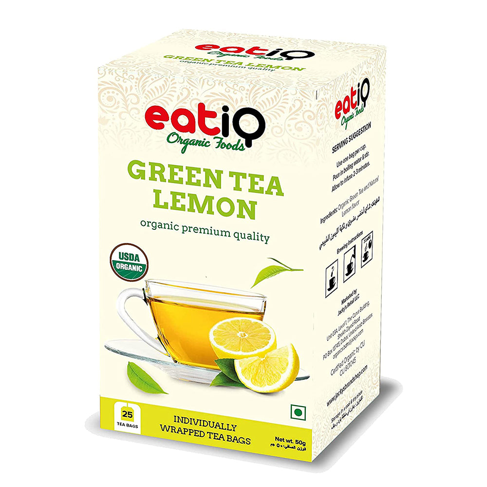 EatiQ للأغذية العضوية، الشاي الأخضر بالليمون، 25 كيسًا