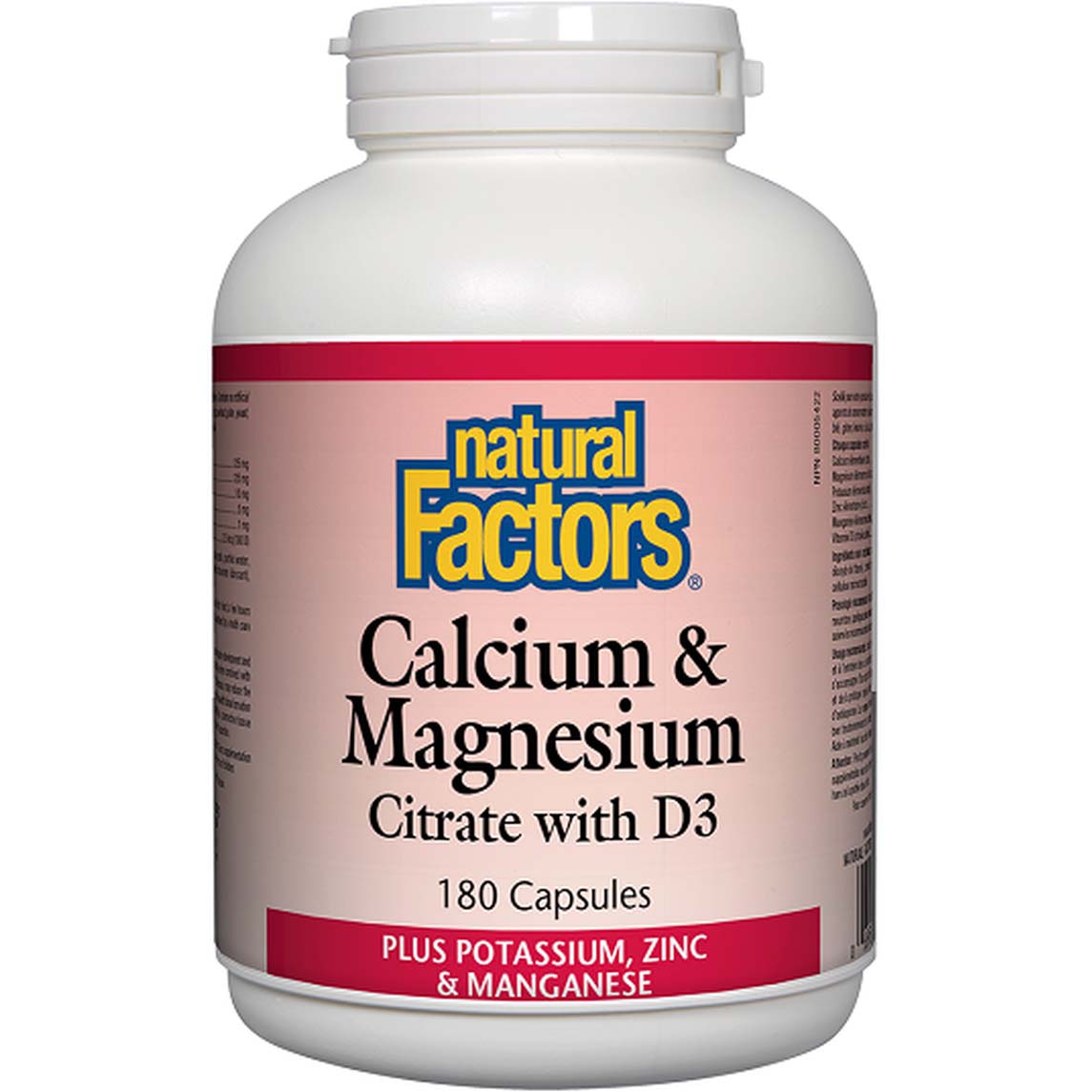 Calcium & Magnesium Citrate with D3 Plus Potassium, Zinc & Manganese, 180 Capsules - Natural Factors - Natural Factors