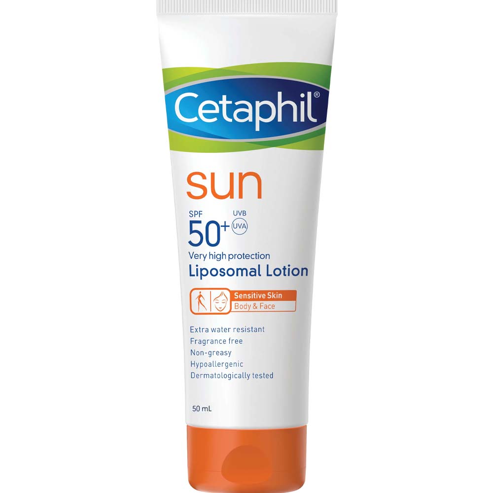 Cetaphil Sun SPF 50+ Liposomal Lotion, 50 ML, is a sunscreen designed for sensitive or dry skin. It offers very high protection against UVA and UVB rays with an SPF of 50+. The lotion is easy to apply, absorbs quickly, and does not leave a sticky or greasy residue. It contains aloe vera and vitamin E, which help to moisturize and care for the skin. The product provides immediate sun protection upon application and is photostable, ensuring effective and longlasting UV protection. It is extra waterresistant in both fresh and salt water and is also sweatresistant. The formulation is free from perfume, PEG emulsifiers, and additional preservatives, making it suitable for sensitive skin.