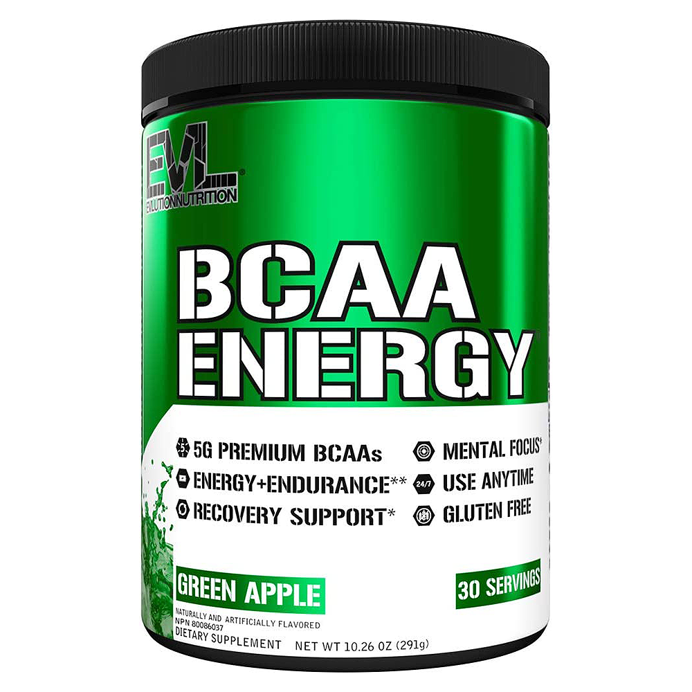 Evlution Nutrition BCAA Energy in Green Apple flavor is available in a 30serving container, making it a convenient option for those looking to enhance their workout performance and recovery.