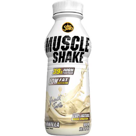 The All Stars Protein Muscle Shake in Vanilla flavor is a convenient, readytodrink protein source designed to support muscle nourishment. Each shake provides up to 40 grams of highquality protein, making it an effective option for muscle recovery and growth. The shake contains a maximum of 2 grams of fat, ensuring it remains a lowfat option for those monitoring their fat intake. With only 25 grams of carbohydrates, it offers a moderate carb content suitable for various dietary needs. The product is free from aspartame, catering to those who prefer to avoid this artificial sweetener. This singleserving shake eliminates the need for preparation and cleanup, making it an efficient choice for busy individuals.