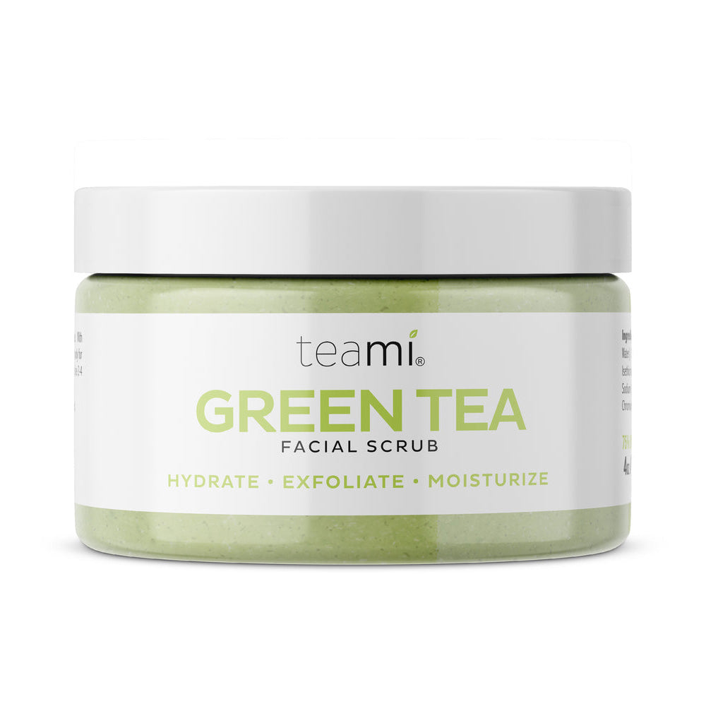 Teami Green Tea Facial Scrub, 100 ML, is a skincare product designed to exfoliate and cleanse the skin. It is formulated with organic matcha green tea, lemongrass, and sugar. This scrub is suitable for all skin types and aims to remove dead skin cells without stripping the skin of its natural oils.