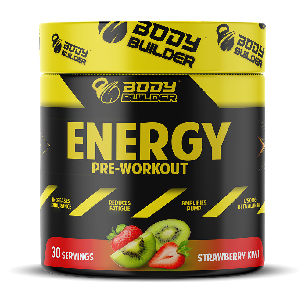 Body Builder Energy Pre-Workout Plus BCAA, Strawberry Kiwi, 30 servings - Body Builder