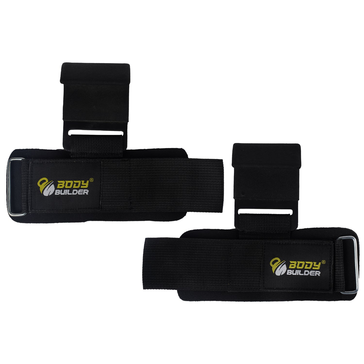 Pack of 2 Pcs Black Body Builder Weight Lifting Wraps Hook - Body Builder