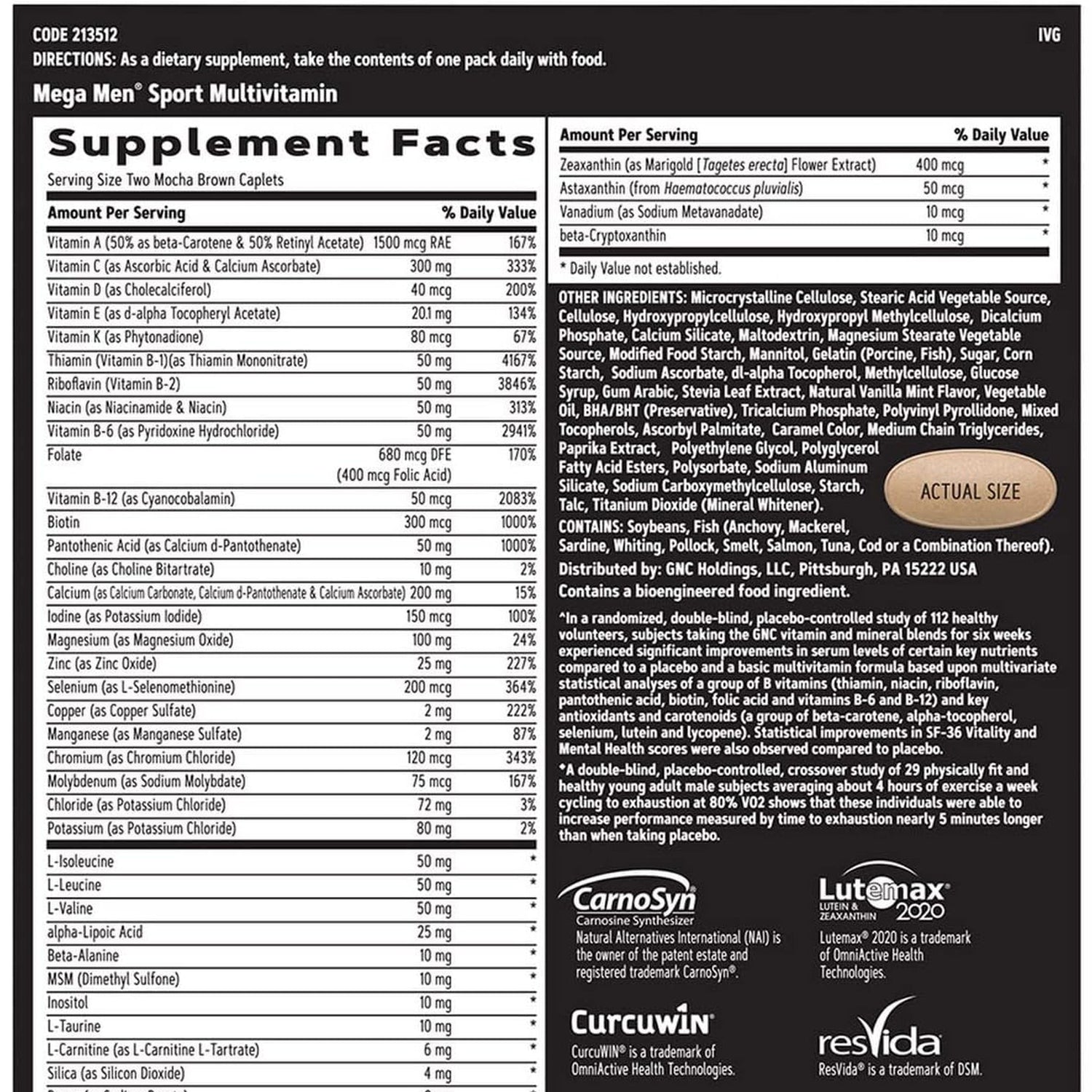 We have added an image to the carousel with the ingredients listed for GNC AMP Men's Extreme Training Vitapak.