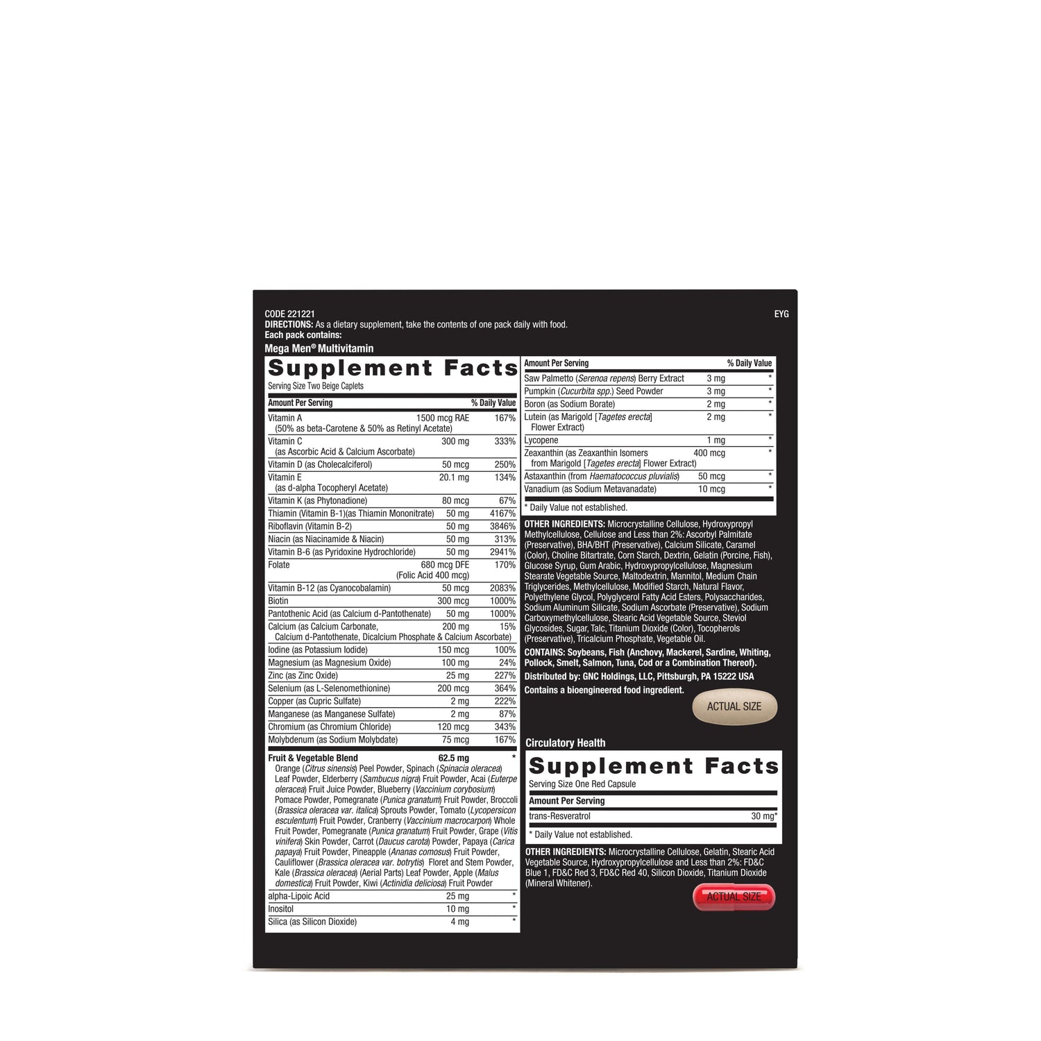 We have added an image to the carousel with the ingredients listed for GNC MEGA MEN TESTOSTERONE Vitapak.