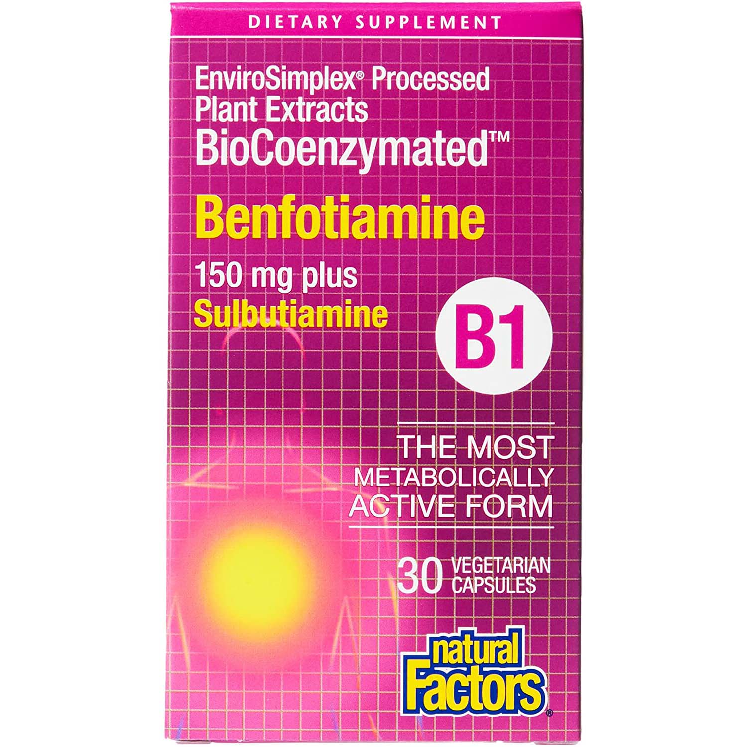Natural Factors BioCoenzymated B1 Benfotiamine, 150 mg, 30 Veggie Capsules, is a dietary supplement designed to support glucose metabolism and normal growth and development. This product features a specialized combination of benfotiamine and thiamine diphosphate, which are coenzyme forms of Vitamin B1. These forms allow for greater absorption and bioavailability compared to noncoenzyme forms.