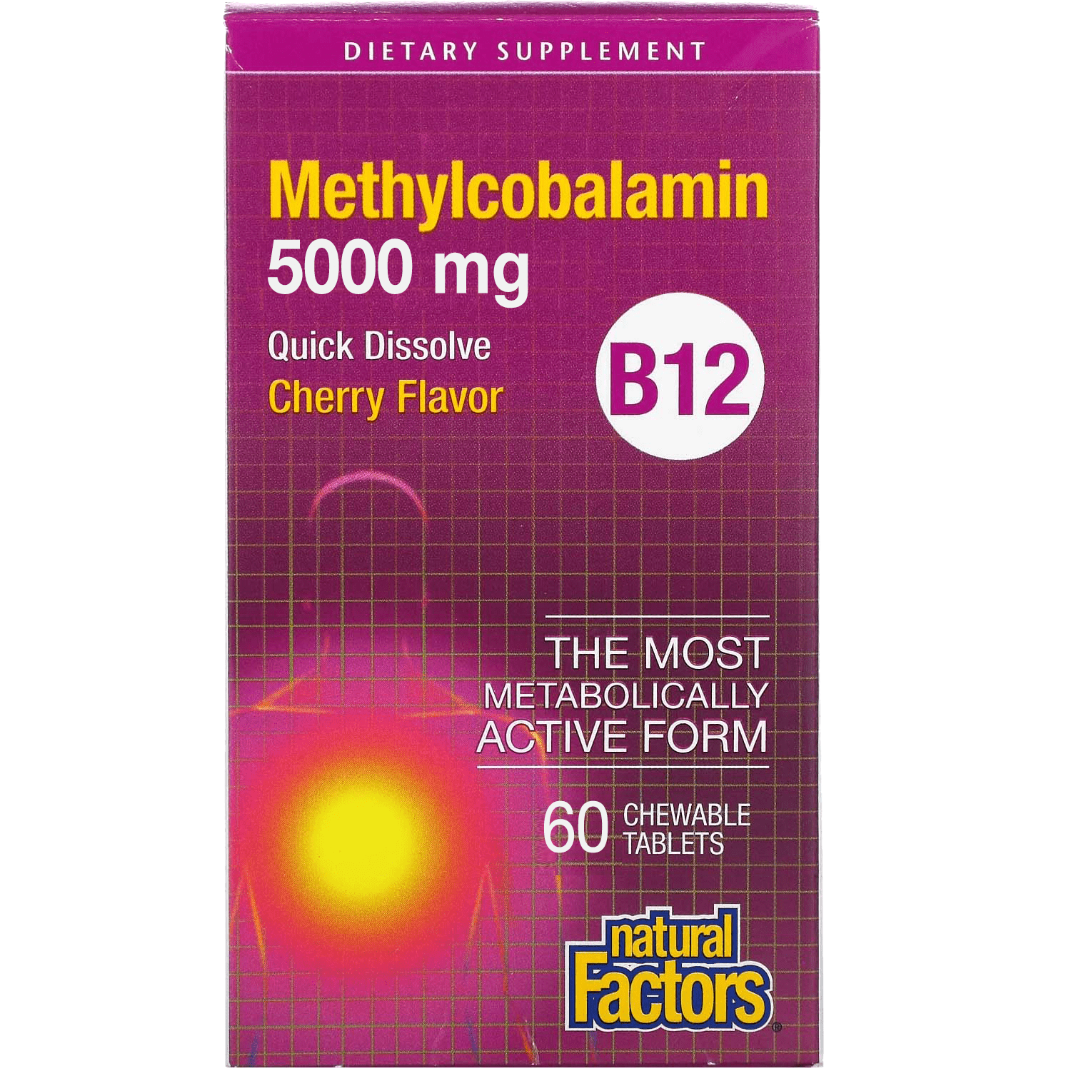 Natural Factors Methylcobalamin B12, 5000 mcg, 60 Chewable Tablets