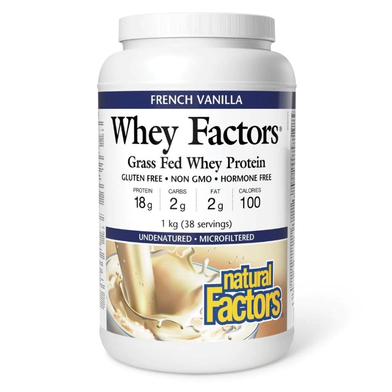 Store Natural Factors Whey Protein, Vanilla, 1 kg in a cool, dry place away from direct sunlight. Keep out of reach of children.