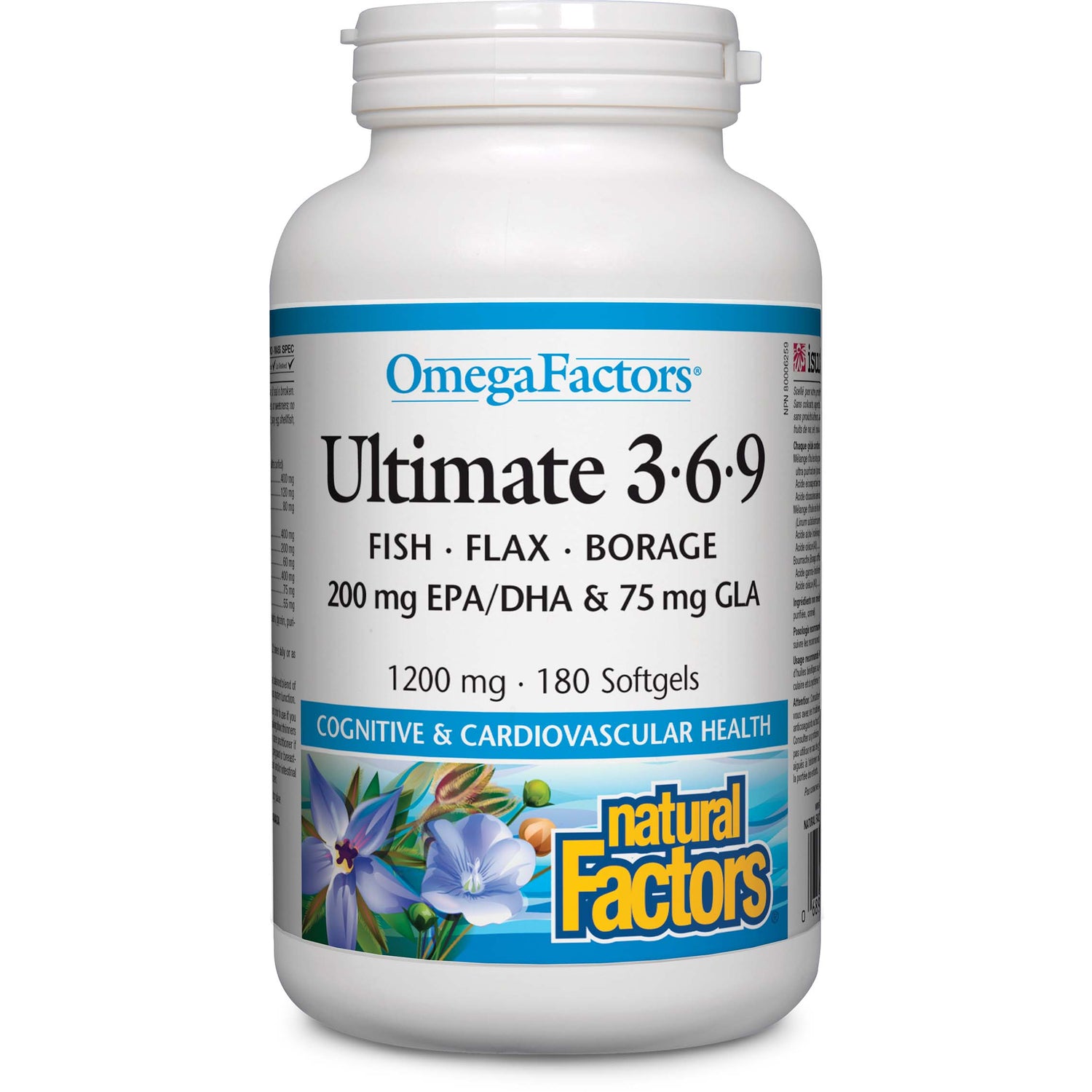 Natural Factors Ultimate Omega Factors 3.6.9, 1200 mg, 180 Softgels, is a comprehensive omega supplement designed to support overall health. This product combines omega3, omega6, and omega9 fatty acids, which are essential for various bodily functions.