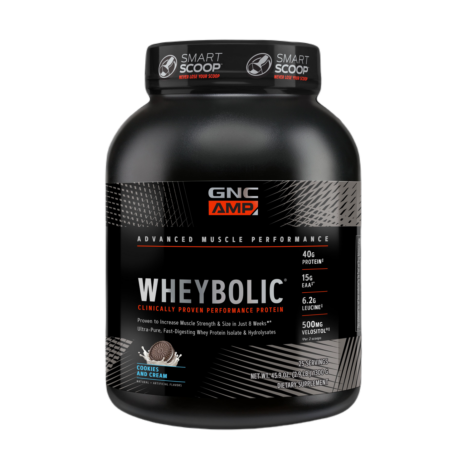 Experience the revolution in performance nutrition with GNC AMP Wheybolic Whey Protein in enticing Cookies Cream flavor. Unleash your potential today!
