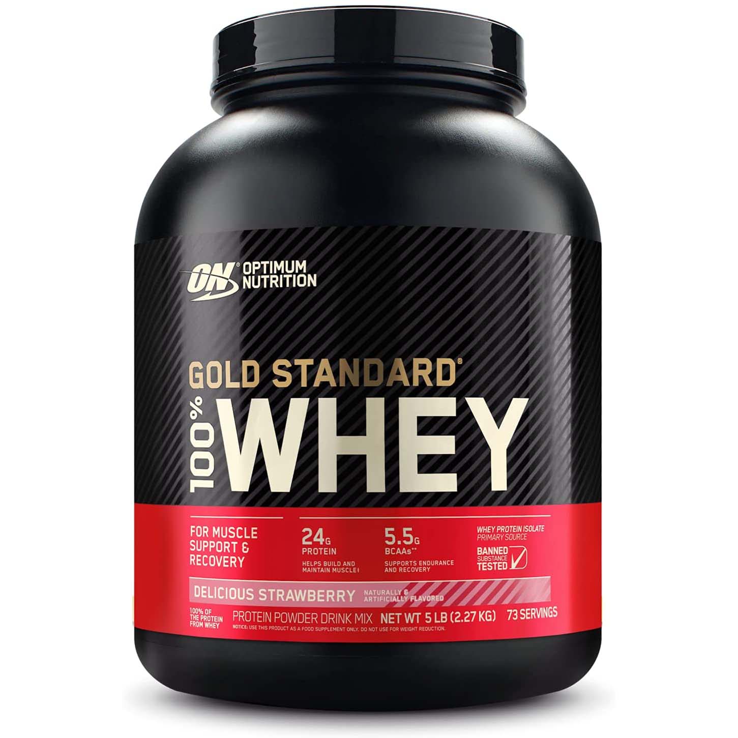 Optimum Nutrition Gold Standard 100% Whey Protein, 5 LB, Delicious Strawberry