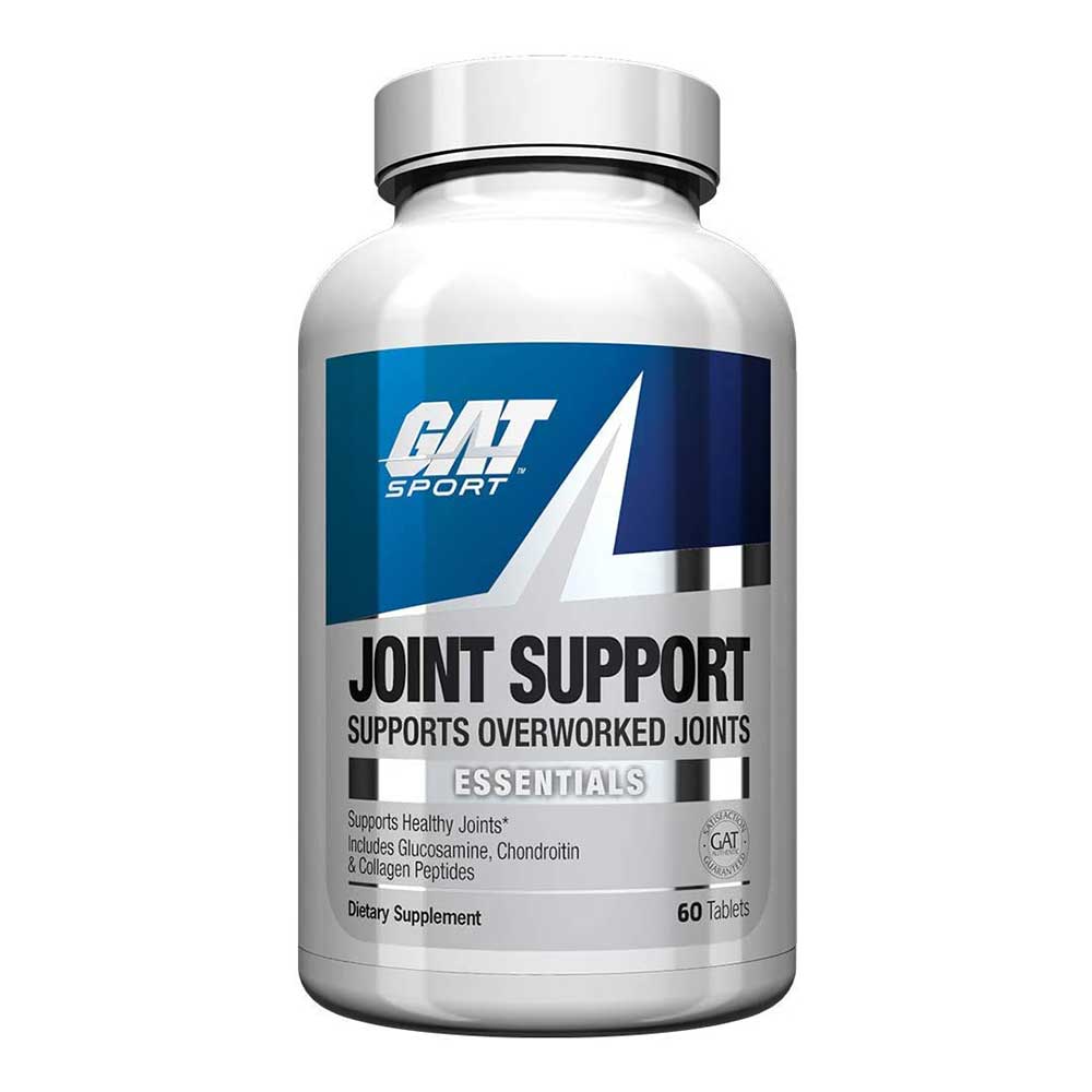 GAT Sport Joint Support is a dietary supplement designed to support joint health, particularly for athletes and bodybuilders. Each bottle contains 60 tablets. The formula includes Glucosamine and Chondroitin, which are known to support joint function and flexibility. Additionally, the product contains Collagen peptides and Hyaluronic Acid, which contribute to the health of cartilage and bones.