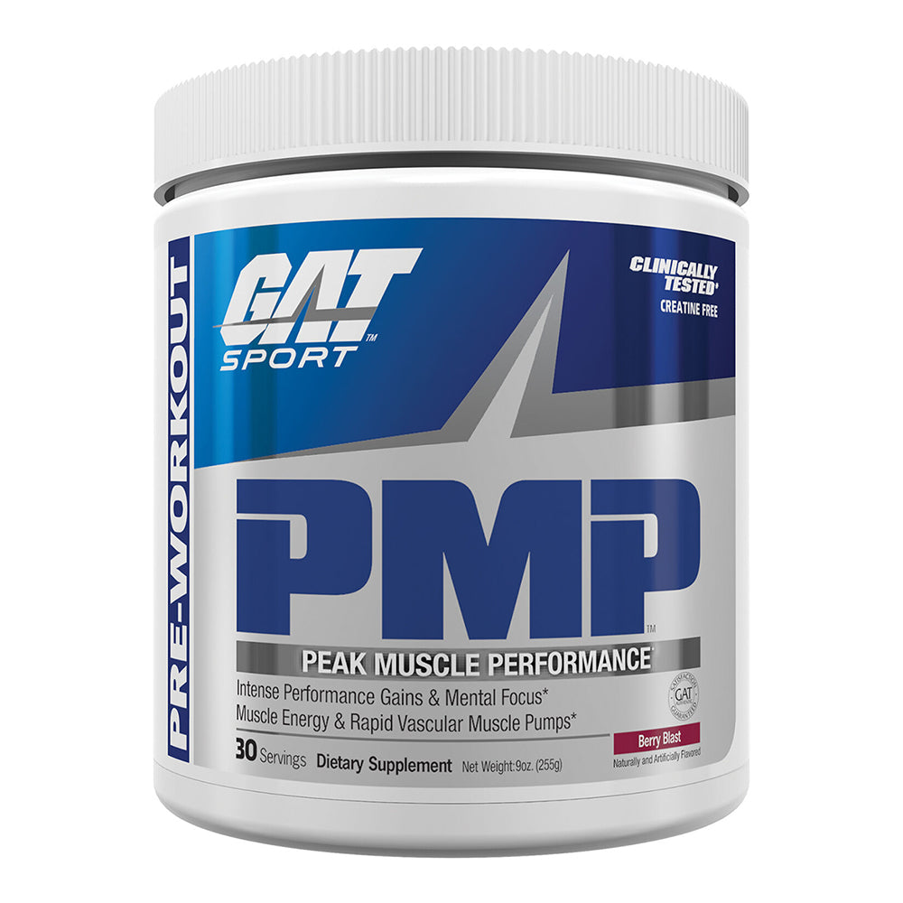 GAT Sport PMP PreWorkout, Berry Blast, 30 servings, is designed to enhance your workout performance. This preworkout supplement aims to help you break through training plateaus and elevate your sports endurance and muscular output. It features a blend of clinically researched ingredients that support Peak Muscle Performance.