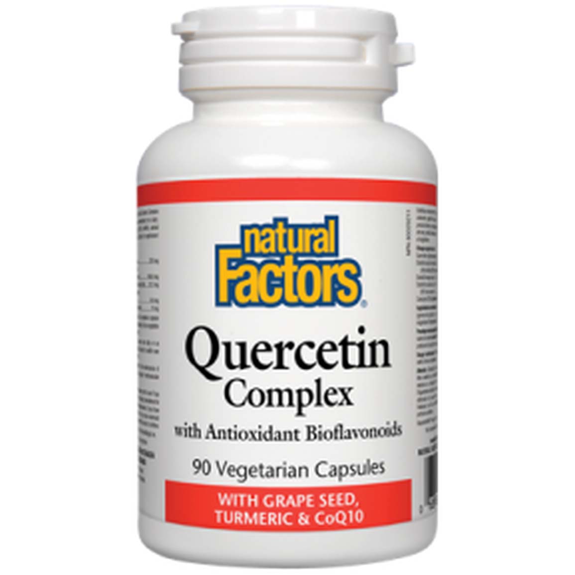 لقد أضفنا صورة إلى القائمة الدائرية تحتوي على المكونات المدرجة لـ مركب كيرسيتين، 90 كبسولة نباتية - عوامل طبيعية.